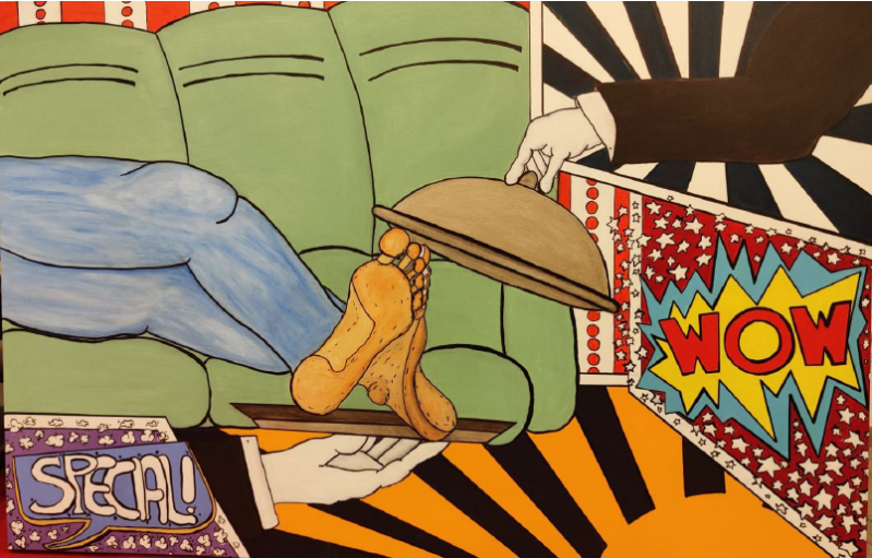 “Il pranzo è servito”, Acrilico su tela 150 x 100 x 3,5 cm.